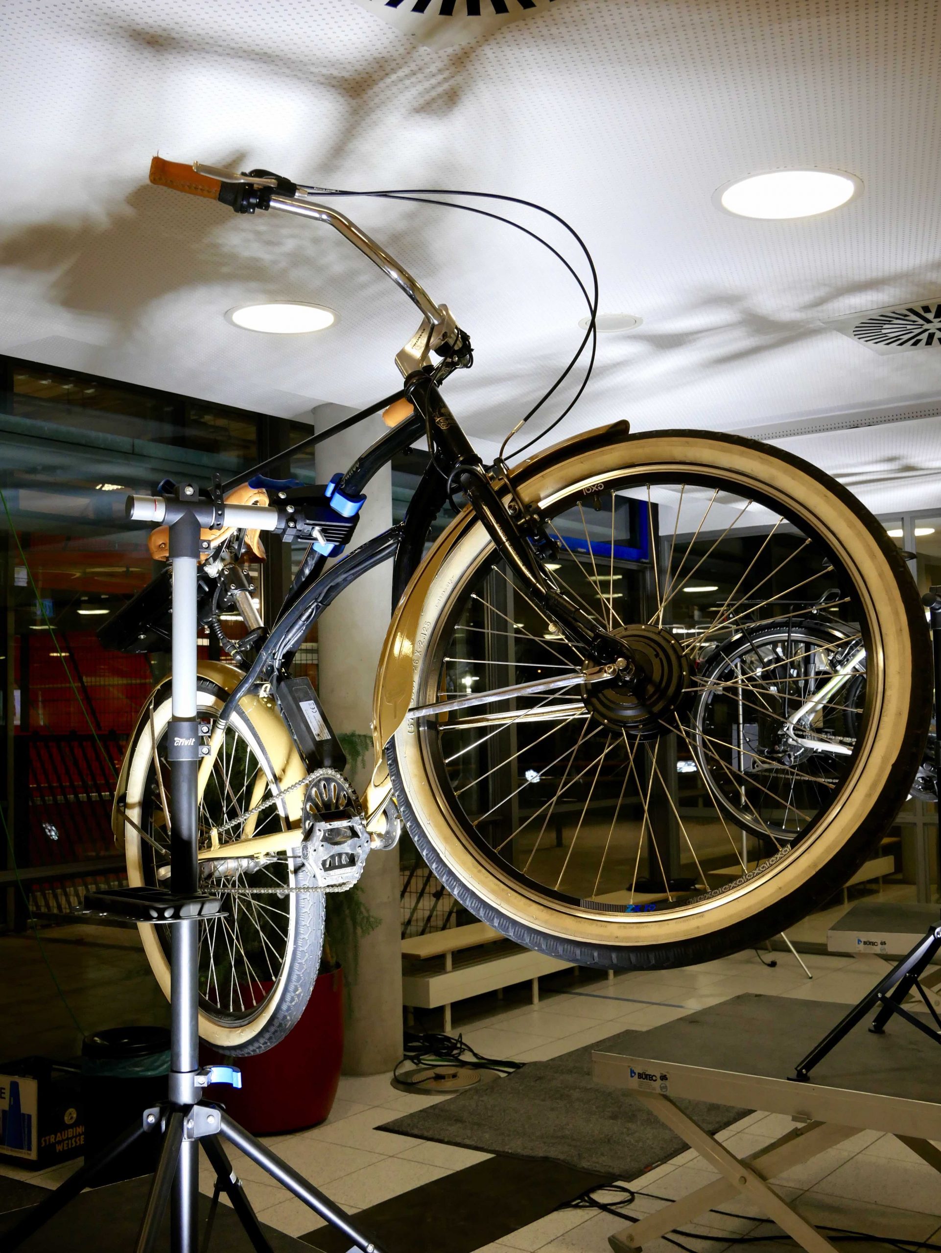 Thank you for your interest in the project! During the school year, class E122 (now E222) carried out a project to convert used bicycles into pedelecs. We have upgraded our bikes with 3 different kits. All have different types of drive and batteries.